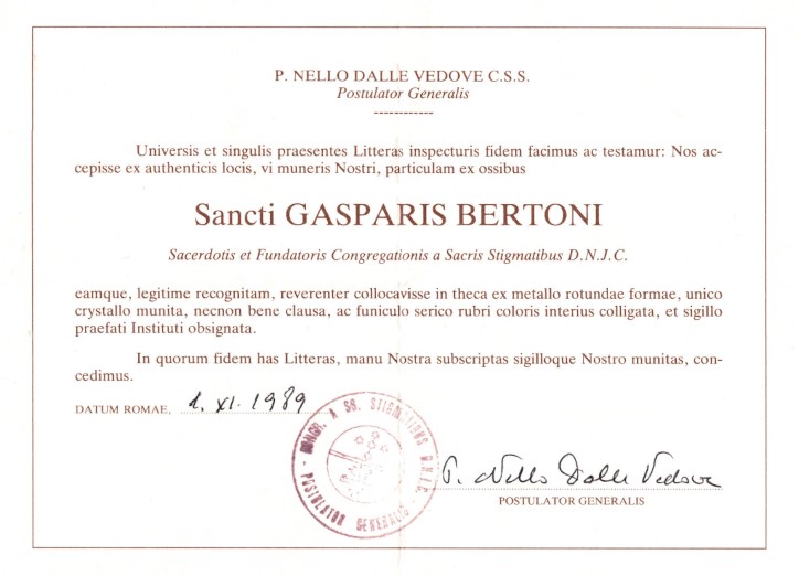 Fr. Bertoni was beatified by Pope Paul VI on Nov. 1, 1975, and canonized by Pope John Paul II on Nov. 1, 1989.